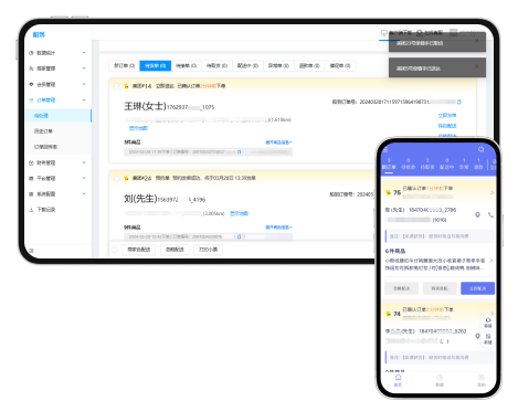 支持电脑端、Android/iOS移动端使用,商家可随时随地查看管理订单配送情况