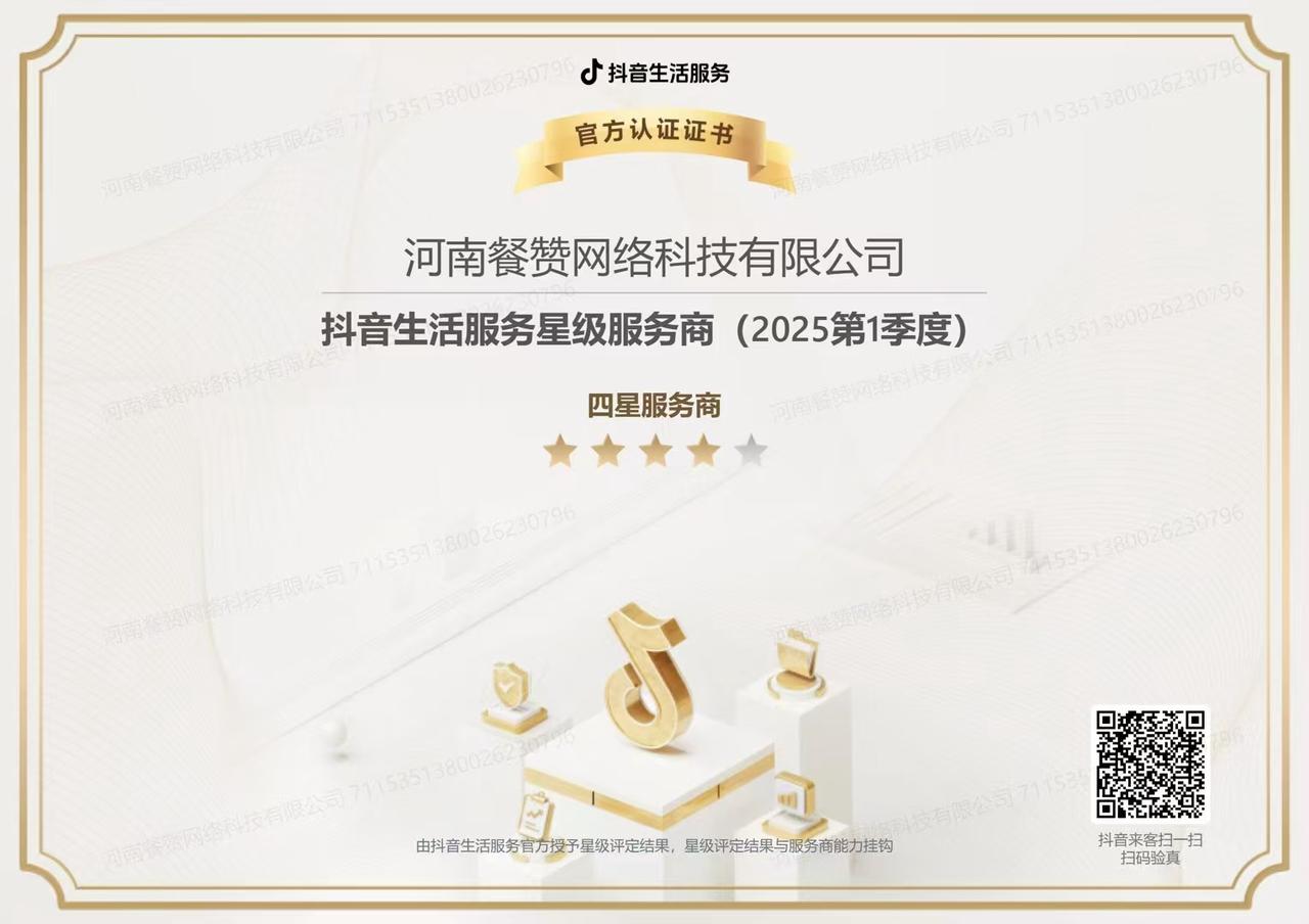 近日,深耕抖音生活服务领域的领军企业餐赞,凭借其卓越的市场表现和持续的创新能力,继续获得“抖音生活服务星级服务商”称号。
