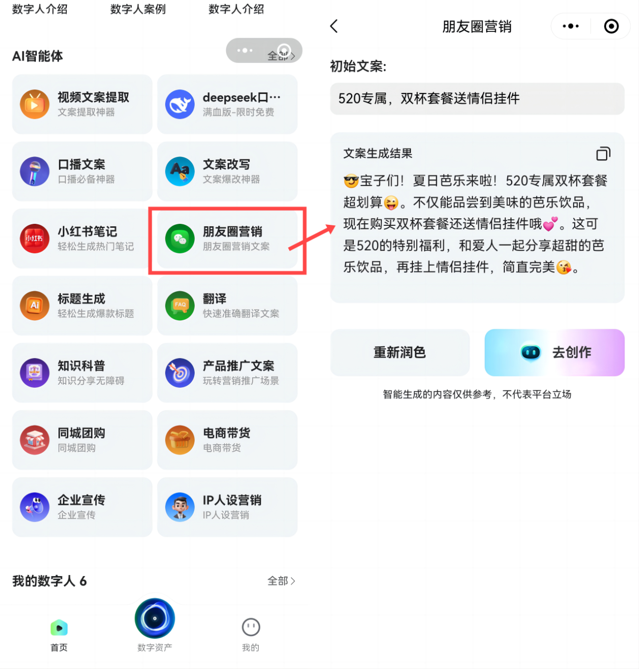 • 私域引流:AI自动生成朋友圈文案,微信加粉成本降至0元。