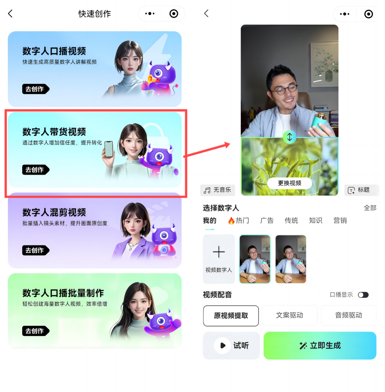 小魔推方案:数字分身裂变,克隆1个主IP形象,衍生10个垂直领域子IP(如美妆、穿搭、测评);智能分发,AI自动适配抖音竖版、B站横版、小红书图文笔记格式。