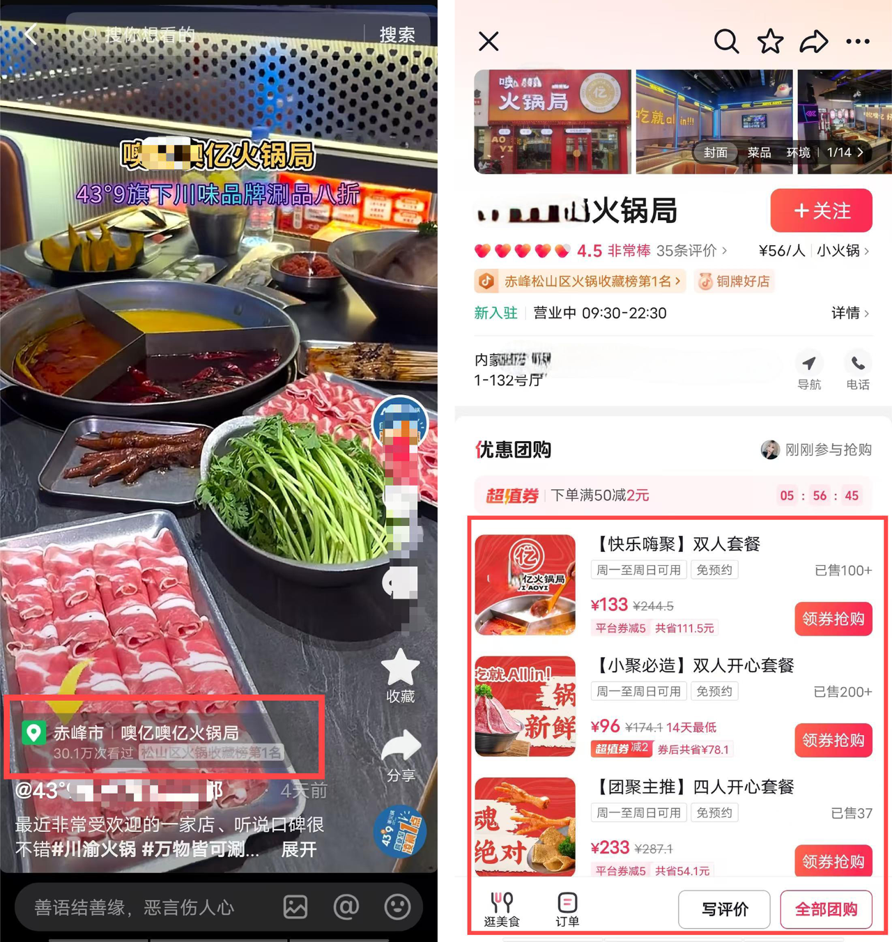 如此高的曝光度,让这家火锅店在抖音的本地火锅收藏榜中一举获得了第一名的佳绩。同时,高人气也带来了高转化,大量的顾客通过视频中的 poi 链接购买了团购套餐,带动了团购订单的转化,显著提升了门店的销售额。