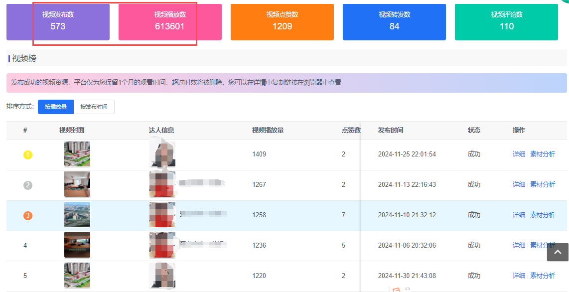 这家房地产企业充分利用小魔推的产品特点和能力,实现了营销的突破。通过小魔推进行剪辑和创作,发布了 573 条视频,获得了61万的视频曝光!创建了两个与楼盘相关的话题,通过小魔推的推广和用户的参与,话题曝光量迅速增长,达到了 795.3 万次。话题的热度吸引了更多用户的好奇心,促使他们进一步了解楼盘信息。
