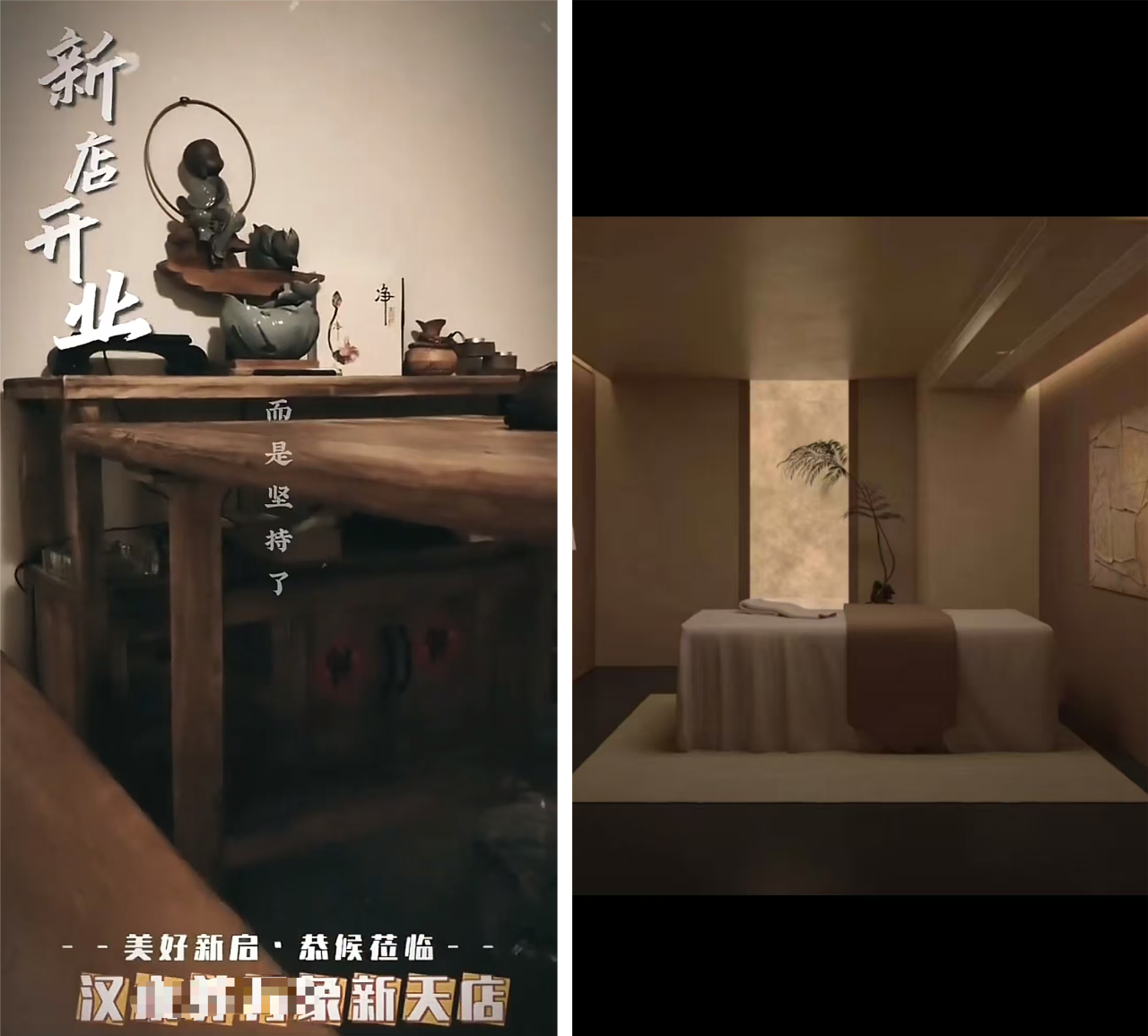 二品牌形象• 店铺形象设计:养生按摩店的装修风格应该传递出放松、舒适和专业的感觉。可以采用柔和的灯光、舒缓的音乐、自然的色调(如木色、绿色)来营造温馨的氛围。同时,店内的布局要合理,按摩房间整洁、安静,配备舒适的按摩床和高质量的按摩用品。例如,一些高端养生按摩品牌店会采用中式古典风格的装修,木质雕花屏风、古色古香的茶具等元素,让顾客仿佛置身于宁静的传统养生空间。如果店里有这些元素,一定要在视频里着重凸显出来。