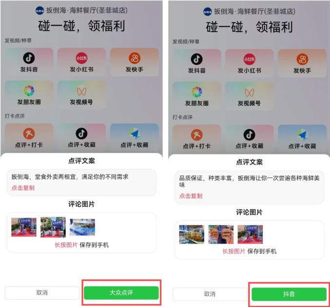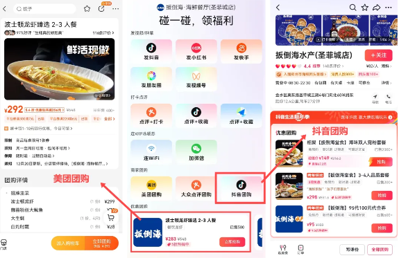 03.便捷的团购引导,促进销售小魔推碰一碰还能直接进入美团 / 大众点评 / 抖音团购,让用户在了解商家宣传信息的同时,能够方便快捷地进行团购购买。这种一站式的营销服务,大大提高了用户的购买转化率,为商家带来更多的销售机会。