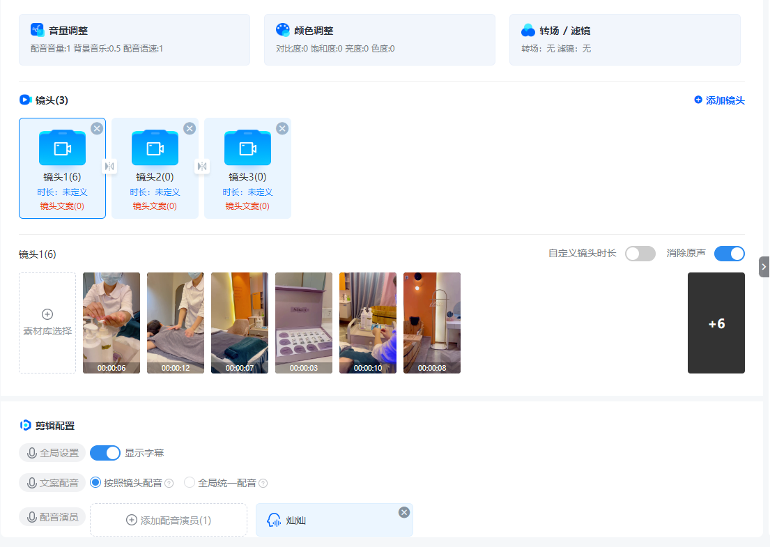 • 逻辑性叙事:在小魔推采用镜头快剪,按照分类上传素材,如门口、环境、按摩手法等,小魔推会根据AI文案创作内容按 “痛点引入→服务展示→优惠引导” 结构拼接视频,确保信息清晰。